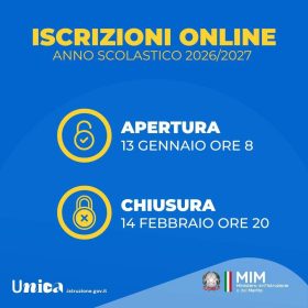Dal 13 gennaio al 14 febbraio 2026 saranno aperte le iscrizioni alle prime classi per l’anno scolastico 2026/2027.
